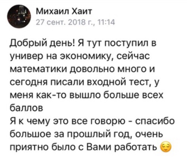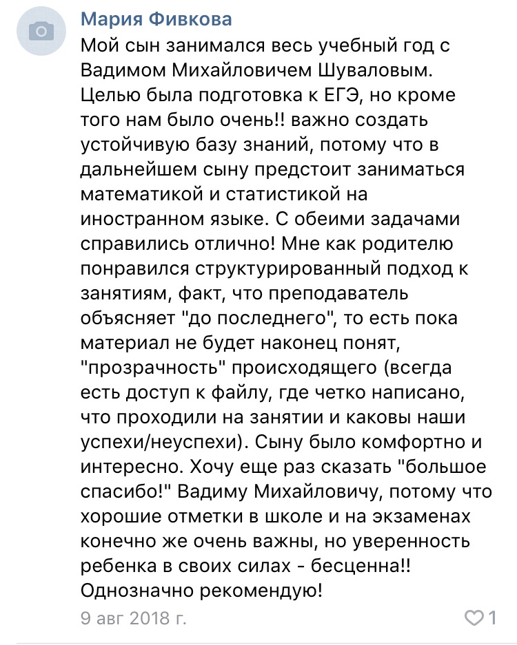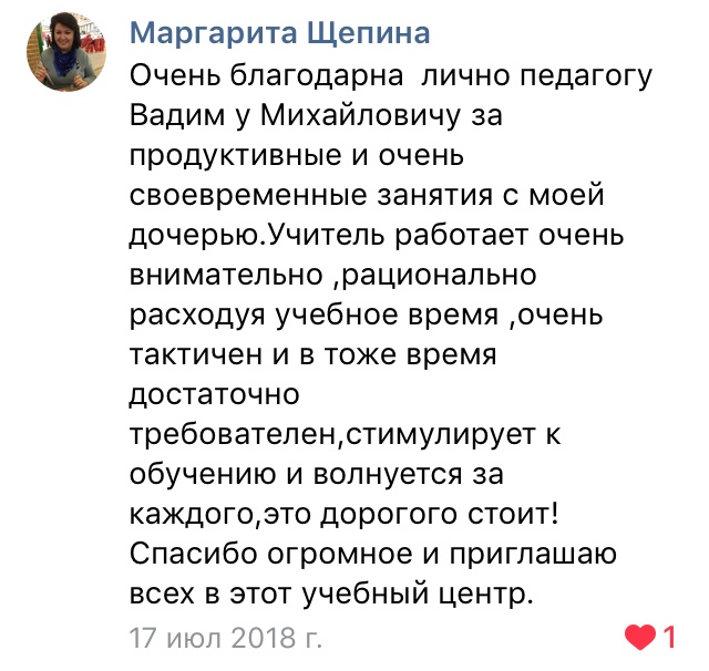 У каждого ученика своя скорость усвоения информации, поэтому занятие заканчивается тогда, когда мы с учеником разобрали все необходимые задания — будь то час, два или более.