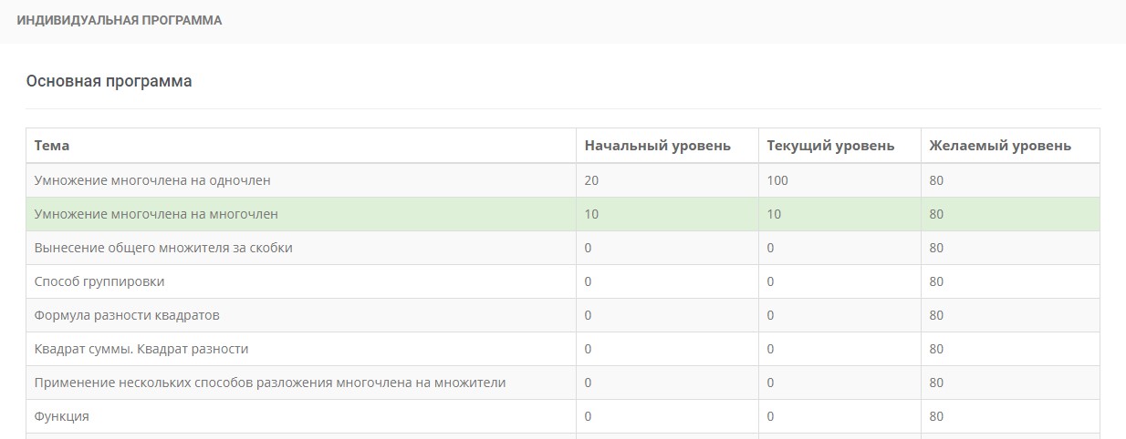 индивидуальную программу с учетом показанных результатов
